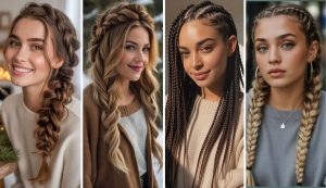 The contrast between the sleek braid and the untamed loose side gives it an edgy, cool vibe.