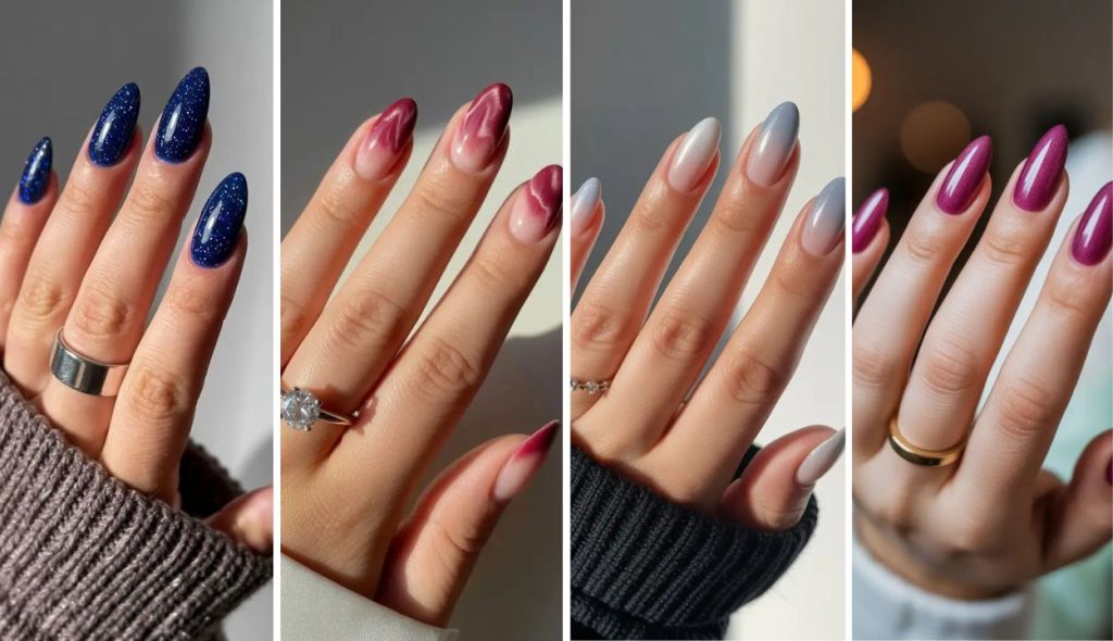 Almond nails provide soft, romantic appeal. Gentle, warm, and winter-ready without excessive fuss.