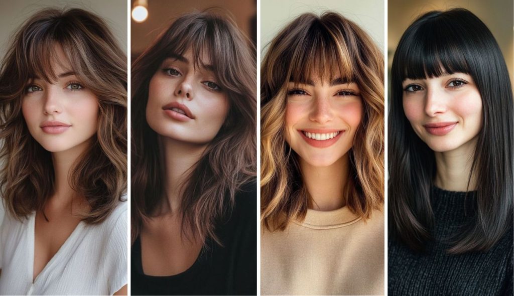 A textured lob with bangs strikes the perfect balance of being edgy and sophisticated. it is a great style for women who want to look put together without the effort. Its layered movement creates volume while the bangs softy cynosure features.