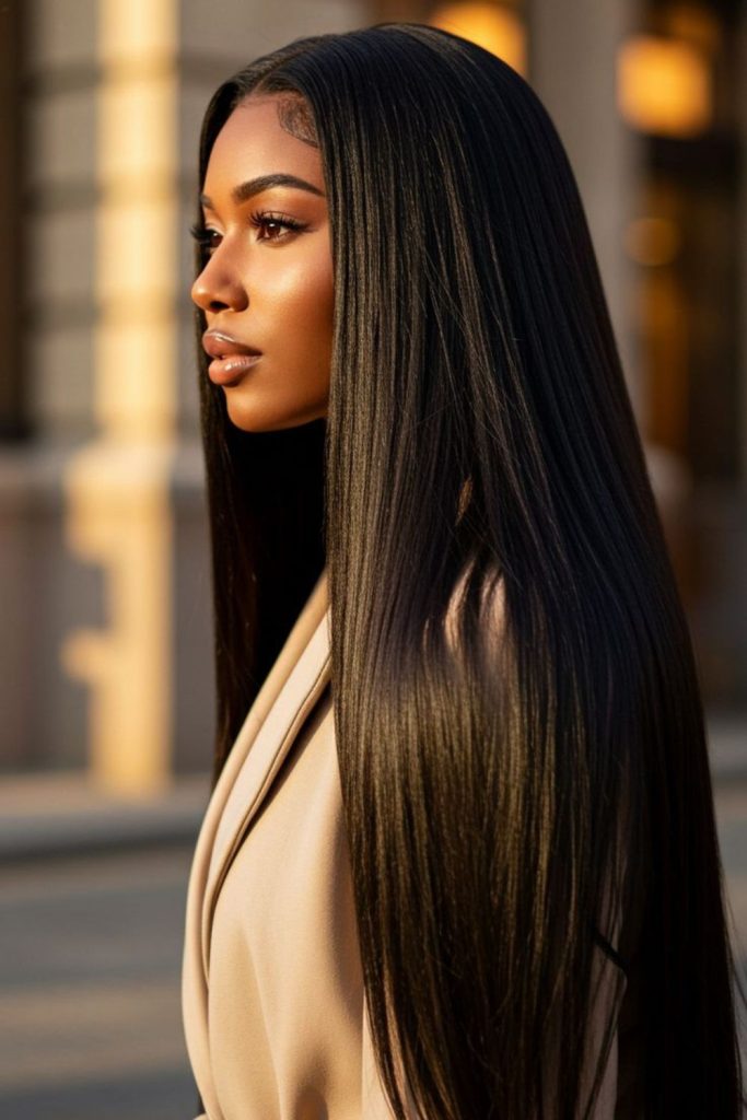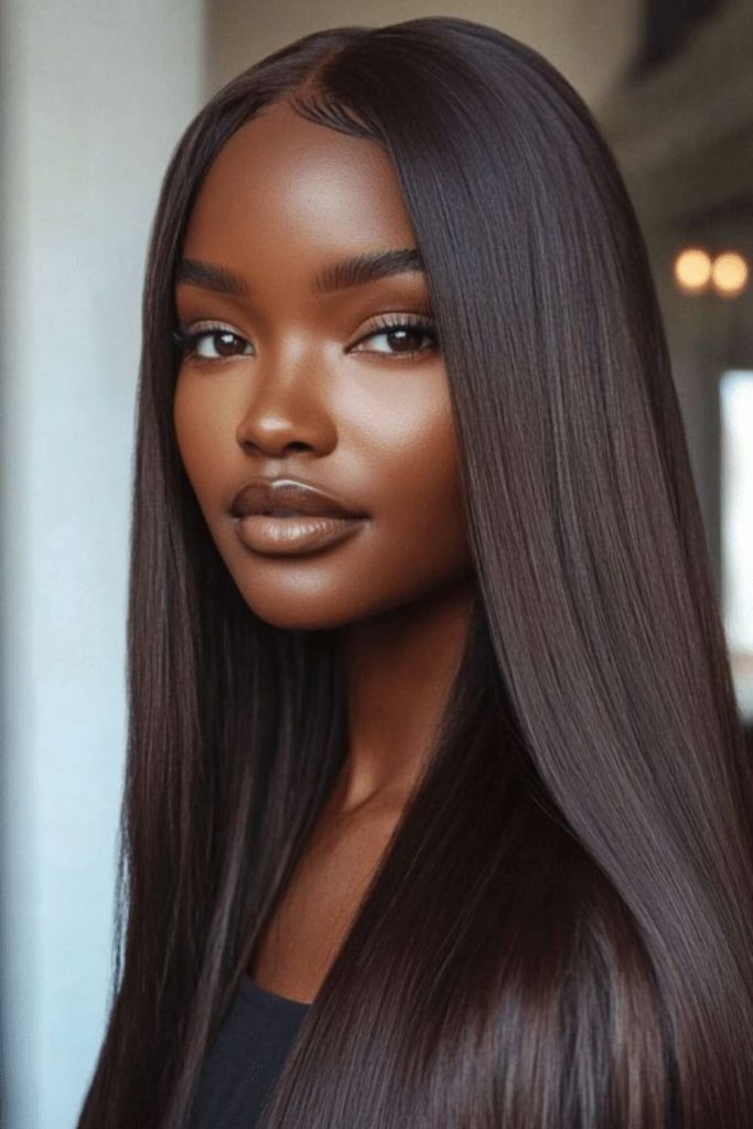 Polished strands flowing like liquid silk create a goddess-worthy aura that feels both regal and effortless.