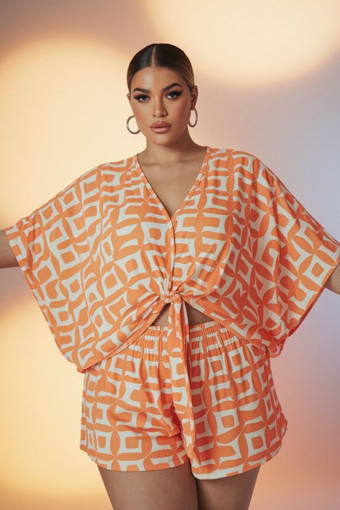 Bottom: Matching shorts with chunky sneakers