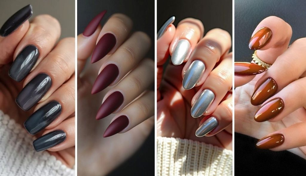 Nails convey grounded elegance with muted sophistication.