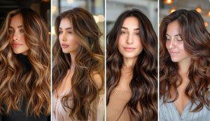 The dark brown coloration of one’s hair possesses an inherent depthfulness akin to velvet; however, the addition of highlights serves to reveal the previously